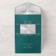 Romantic Heart & Calligraphy - Teal/Silver All In One Invitation