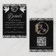 This romantic design features an elegant black background with glitter borders, a delicate silver scroll heart & doves with details for more information on the front and QR code and monogram placeholder on the back. Also available with different coloured backgrounds for your wedding theme colours. (Glitter is simulated in the artwork). Designed to coordinate with the "Two Shall Become One - Hearts, Doves & Glitter" Wedding Collection. To change details, click «Personalise». To move the text or change the text size, font, or colour click «Click to customise further»