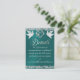 This romantic design features an elegant teal background with glitter borders, a delicate silver scroll heart & doves with details for more information on the front and QR code and monogram placeholder on the back. Also available with different coloured backgrounds for your wedding theme colours. (Glitter is simulated in the artwork). Designed to coordinate with the "Two Shall Become One - Hearts, Doves & Glitter" Wedding Collection. To change details, click «Personalise». To move the text or change the text size, font, or colour click «Click to customise further»