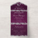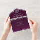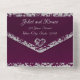 This romantic design features a dark purple (plum) background with glitter borders, a delicate silver scroll heart, script in elegant fonts. Perfect for the simple to most elegant wedding. Also available with different coloured backgrounds for your wedding theme colours. (Glitter is simulated in the artwork). Designed to coordinate with the "Romantic Scroll Hearts & Glitter Wedding" Collection. To change details click «Personalise». To move the text or change the text size, font, or colour click «Click to customise further»
