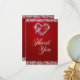 Romantic Heart & Glitter on Red Thank You Card