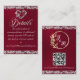 This romantic design features a burgundy background with glitter borders, a delicate silver scroll heart, details for more information on the front and QR code and monogram placeholder on the back. Also available with different coloured backgrounds for your wedding theme colours. (Glitter is simulated in the artwork). Designed to coordinate with the "Romantic Scroll Hearts & Glitter Wedding" Collection. To change details, click «Personalise». To move the text or change the text size, font, or colour click «Click to customise further»