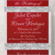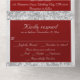 This romantic design features a crimson red background with ribbon & glitter borders, a delicate silver scroll heart, script in elegant fonts. Perfect for the simple to most elegant wedding. Also available with different coloured backgrounds for your wedding theme colours. (Ribbon & glitter are simulated in the artwork). Designed to coordinate with the "Romantic Scroll Hearts & Glitter Wedding" Collection. To change details click «Personalise». To move the text or change the text size, font, or colour click «Click to customise further»