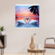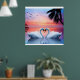 Romantic Heart Swans Tropical Sunset Paradise Poster