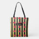 Add some elegance to your accessory wardrobe with a customised tote bag. Personalise with a name, initial, message, quote or anything you desire. Romantic red hearts with gold & black stripes.