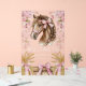 The sign features a beautiful horse illustration with a braided mane and bow, set against delicate cherry blossom flowers and subtle hay accents. Certain areas of the acrylic are transparent, giving a light and elegant feel, making it a truly romantic and sophisticated centerpiece.