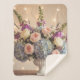 Cozy up in classic elegance with this luxurious blanket featuring a stunning photographic print of a large, romantic floral centerpiece. The arrangement showcases soft blue hydrangeas, blush pink and cream roses, delicate lavender, and purple foxglove spikes, all beautifully contained in a white urn. The background is softly blurred with warm, glowing bokeh lights, creating a dreamy and sophisticated atmosphere. This throw is perfect for adding a soft, enchanting touch to a bedroom, wedding décor, or a cozy evening on the sofa.