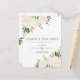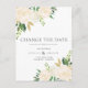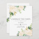 Announce the new date for your wedding with this delightfully pretty design featuring corner arrangements of watercolor roses in white and ivory, and green and gold leaves, with a touch of faux glitter. Personalise with your wedding details in grey font.