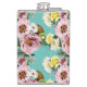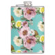Romantic kiwi, lemon and peony pattern hip flask
