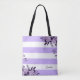 This pretty tote bag features a double sided design with lavender wide horizontal stripes on a white background, embellished with romantic lavender floral print and personalised name on a white label. Click the "Customise" button to add your own name, monogram or initials, arrange the text, change the font, font colour and font size, change the background colour and/or delet any element, as you wish.