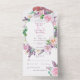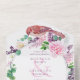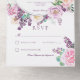 ALSO AVAILABLE WITH A QR CODE TO SCAN IN THE RSVP AREA OR WITH DINNER OPTIONS. This design features a floral oval frame of purple and pink lilacs, roses, and other flowers complimented with eucalyptus and greenery. A sweet bird tops the wreath of flowers. Personalised All-In-One invitations are a unique combination of both a beautifully printed custom invitation with an easy to tear off perforated RSVP postcard. And they are so easy to use! You simply fold, then seal the back flap with the three included clear stickers, and mail. And when your guests receive your custom invite, they just tear the perforated RSVP Card off and drop it back in the mail to you!