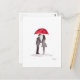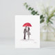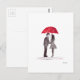 Romantic love couple with red umbrella watercolor postcard