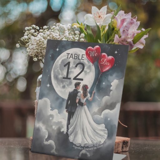 At the heart of this romantic wedding design are the bride and groom, depicted as timeless lovers floating on a cloud of love. The theme is infused with vibrant red hearts, symbolising the passion and commitment shared by the couple. These romantic red heart balloons add a playful touch, enhancing the dreamy atmosphere and making it ideal for a Valentine's Day celebration where "love is in the air."