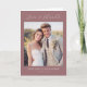 This wedding thank you card features a central photograph of a couple, framed by a maroon border with elegant cursive text at the top reading "Love & Thanks." The design includes customizable placeholders for names and dates in bold serif and simple sans-serif fonts. The color palette consists of soft creams and warm maroons, creating an inviting and romantic atmosphere. The layout is balanced and symmetrical, emphasizing warmth and affection, making it perfect for expressing gratitude after a special occasion.