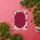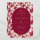 This elegant wedding invitation features a vintage-inspired design with a lush floral pattern of pink roses and green leaves on a cream background. The central maroon oval, framed in gold, highlights the event details in sophisticated serif fonts, creating a harmonious blend of tradition and modern clarity. Rich colors like deep maroon and vibrant pink set a warm, inviting tone, perfect for celebrating love and commitment. Ideal for couples seeking a romantic yet refined aesthetic, this invitation sets the stage for an unforgettable occasion.