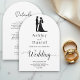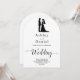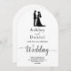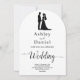 This elegant black-and-white arch wedding invitation is perfect for a modern wedding. The simple design features elegant black calligraphy and a bride and groom illustration on a clean white background. The invitation card includes the wedding details on the back instead of paying for a separate enclosure card.