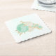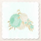 Romantic mint green & white flowers with gold leaves botanical wedding paper coaster.