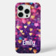 Romantic Modern Love Hearts Personalised Name iPhone 15 Pro Phone Cases features a cute pattern of pink, purple, gold and blue love hearts. Perfect gift for girls, girlfiends, wife for Valantine's Day, birthday, Christmas, holidays and more. Designed by Evco Studio www.zazzle.com/store/evcostudio