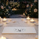 Celebrate your "yes" moment with this modern minimalist proposal scene. Featuring elegant silhouettes and custom monogram initials for a timeless engagement.This design features a high-contrast, jet-black silhouette illustration set against a stark white background, depicting a classic proposal scene with a groom kneeling on one knee before a standing bride. The figures are framed by fine, intersecting geometric circles that house the custom initials "E" and "W" in a formal, flowing calligraphy script. The composition utilizes negative space to create a clean, contemporary aesthetic suitable for formal events.This is a flat printed image with a printed ink effect, not actual raised letterpress or engraved material.
