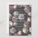 Romantic Moody Delicate Dark Black Floral Wedding Invitation. Pink roses, white flowers. A transparent veil overlay with a vellum look adds a touch of moody mystery and softens the dark black background on both the front and back of the card.