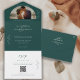 A modern and romantic mood-trending design in a dark emerald green adorned with botanical and calligraphy script accents. Follow the guide above to replace personal wedding details including your favourite photo. An all-in-one wedding invitation that includes an rsvp card with an option to scan the QR code, and/or visit your wedding website.