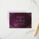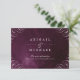 Romantic handwriting flourish calligraphy corner on moody deep plum purple watercolor background, elegant and sophisticated, great wedding insert cards for vintage wedding, fall or winter weddings and evening wedding.
