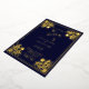 An elegant and romantic Gold Foil Frame on a Navy Blue background with gold coloured text on this gorgeous wedding invitation.