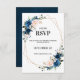Romantic Navy blue Blush Pink Floral Geometric RSVP Card
