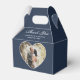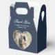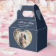Custom navy blue wedding photo thank you favour box featuring a heart shaped photo frame.