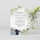 beautiful navy blue and dusty blue flowers with green leaves botanical details enclosure card.