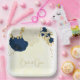 Romantic navy & white flowers gold paper plate