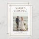 Share the joy of your first Christmas as a married couple with this elegant photo holiday card featuring warm modern typography and a timeless border design. Perfect for newlyweds, it beautifully showcases your favorite wedding moment and festive spirit. Customize names, year, and message to create a keepsake your loved ones will cherish. Personalize yours today and spread holiday love.