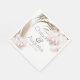 This elegant and romantic wedding or engagement party napkin features a tropical boho floral design. A bouquet of flowers with blush coloured orchids, pampas grass, and palm leaves are pictured in the top right and bottom left.