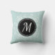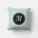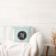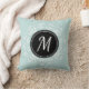 Beautiful throw pillow with personalised monogram with pale blue & white floral wreath design.