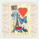 Vintage romantic Paris collage with the Eiffel tower , Paris France with red valentines love heart balloons and pretty blue butterfly and peacock bird and fleur de lys, on an antique postcard background. Copyright Oconnart.