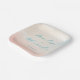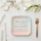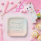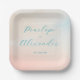 This wedding plate features a soft, pastel watercolor design with gentle gradients of peach, cream, and light blue hues. The elegant cursive text in teal highlights the names "Penelope" and "Alexander," creating a romantic and sophisticated look perfect for formal occasions. The minimalistic layout emphasizes tranquility and celebration, making it an ideal choice for weddings or special events. The hand-painted washes give a dreamy, ethereal feel, enhancing its graceful aesthetic.