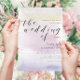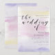 Artistic Pastel Watercolor Typography Wedding Invitation, in romantic shades of colors of purple, blush pink, and pale yellow, for you to customize with your event specifics.