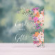 Romantic pastel wild flowers spring summer bridal shower cards and gifts tabletop sign with pretty wild country flowers in pink, peach, purple, lavender, green leaves and more, with a brushed script typography on a transparent background.