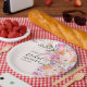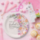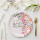 Romantic pastel wild flowers spring summer bridal shower plate with pretty wild country flowers in pink, peach, purple, lavender, green leaves and more, with a brushed script typography on an elegant editable soft pastel pink background.