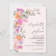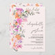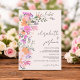 Romantic pastel wild flowers spring summer wedding with pretty wild country flowers in pink, peach, purple, lavender, green leaves and more, with a brushed script typography on an elegant editable soft pastel pink background.