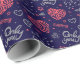Romantic Pattern Only You. Pink, Grey On Navy Wrapping Paper