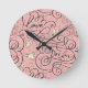 Romantic Pattern with Hearts and Birds Round Clock