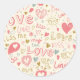 Romantic Pattern with Hearts and Lips Classic Round Sticker