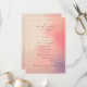 This wedding program features an elegant, minimalist design with a soft gradient background transitioning from peach to pink and purple hues. The layout is centered and vertically aligned, creating a balanced composition that highlights the ceremony schedule in clean, readable typography. A flowing script font introduces "welcome," while a bold serif typeface prominently displays customizable names at the bottom. The overall style exudes warmth and sophistication, making it perfect for formal weddings seeking a romantic and inviting atmosphere.