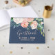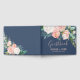 This romantic peony flowers blue wedding guest book is perfect for an elegant wedding. The floral design features blush pink, peach and white cascading watercolor flowers on a navy blue background. Personalise the front cover with the names of the bride and groom and the wedding date.