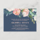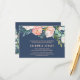 This romantic peony flowers blue wedding reception card is perfect for an elegant wedding. The floral design features blush pink, peach and white cascading watercolor flowers on a navy blue background. Personalise this detail enclosure card with your reception information and include your wedding website address too!