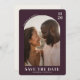 This elegant save the date design features a warm, romantic photo framed within an arched border, set against a rich maroon background. The typography is clean and modern, complementing the soft, natural tones of the image. Perfect for couples looking to announce their special day with sophistication and charm, this design captures a timeless and heartfelt mood. It’s ideal for those who want to convey warmth and intimacy in their wedding announcement while allowing space for personalization details.