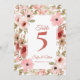 Blush Pink Floral Wedding Table Number Card | Elegant Watercolor Flower Centerpiece Table Sign | Romantic Garden Reception Decor.