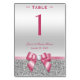 Elegant sparkly Wedding table number cards with a classy romantic pink bow and ribbon image on a pretty shiny silver glitter and silver gradient background. All text is fully customisable to meet your requirements. If you need help to customise your product or would like matching products please contact me through my store and i will be very happy to help you.