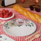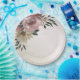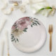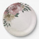 Unique wedding paper plate featuring romantic pink and champagne flowers and green leaves.